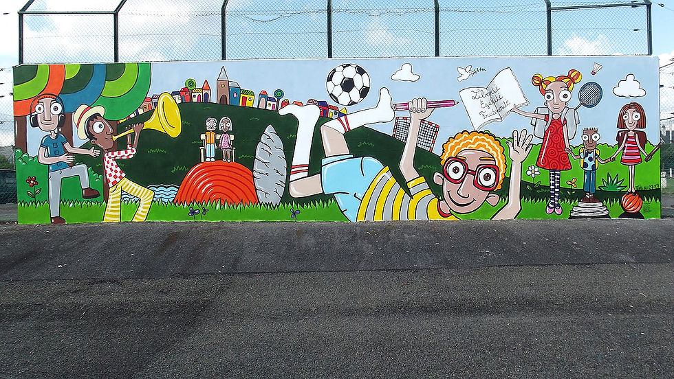 Réalisations seules ou en groupe de peintures murales, tableaux collectifs, papier mâché, peintures artistiques, modelage, décorations, photographies, petites vidéos...